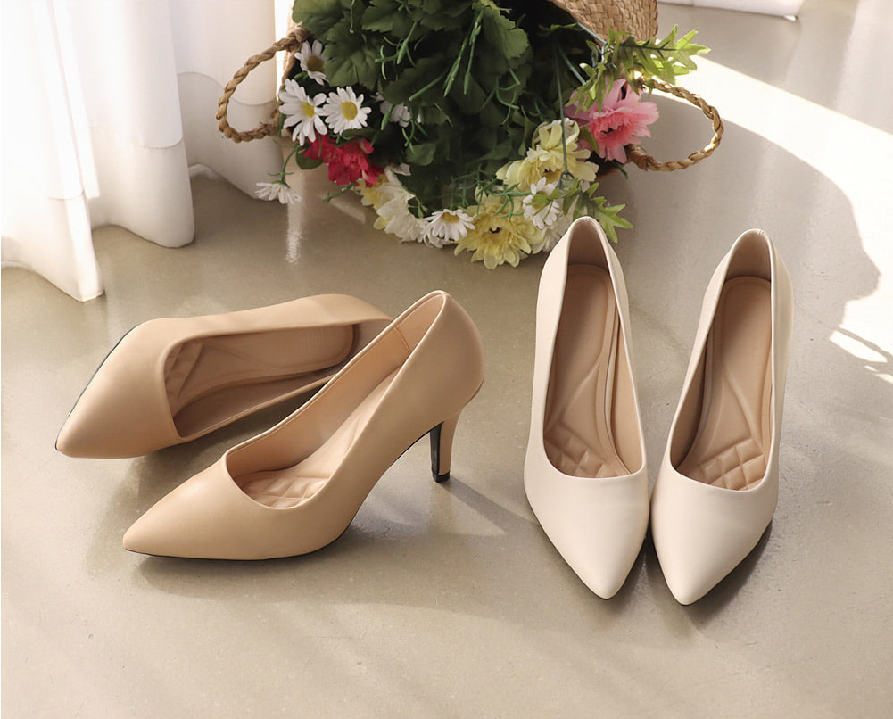 고급스러운 인조가죽 소재로 완성된 민자 펌프스!