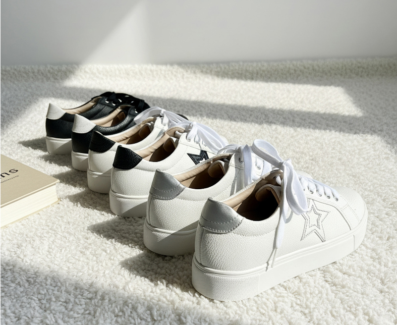 매일매일 편하게 신으면서도 스타일을 포기할 수 없다면? 바닐라슈에서 시즌과 유행을 타지 않고 전연령대가 즐기기 좋은 트렌디한 '솔트스 별 배색 레이스업 통굽 키높이 스니커즈(3cm)'를 소개합니다!