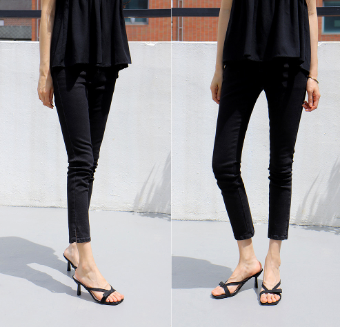 발등을 덮는 리본탑 장식이 여성스럽고 트렌디한 무드를 더합니다. 발등 앞쪽 라인은 V자로 세련되게 컷팅되어 발을 얄쌍하고 슬림하게 보이도록 연출하며, 쿨하고 시원한 무드를 선사합니다.