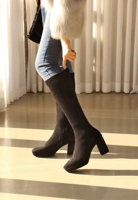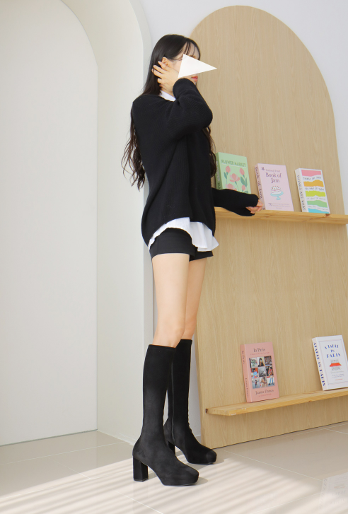 "신는 순간 다리 라인이 확 달라진다!"는 극찬이 쏟아지는 바닐라슈 [셀레나 스웨이드 스판 가보시 롱부츠(8cm)]를 소개합니다.