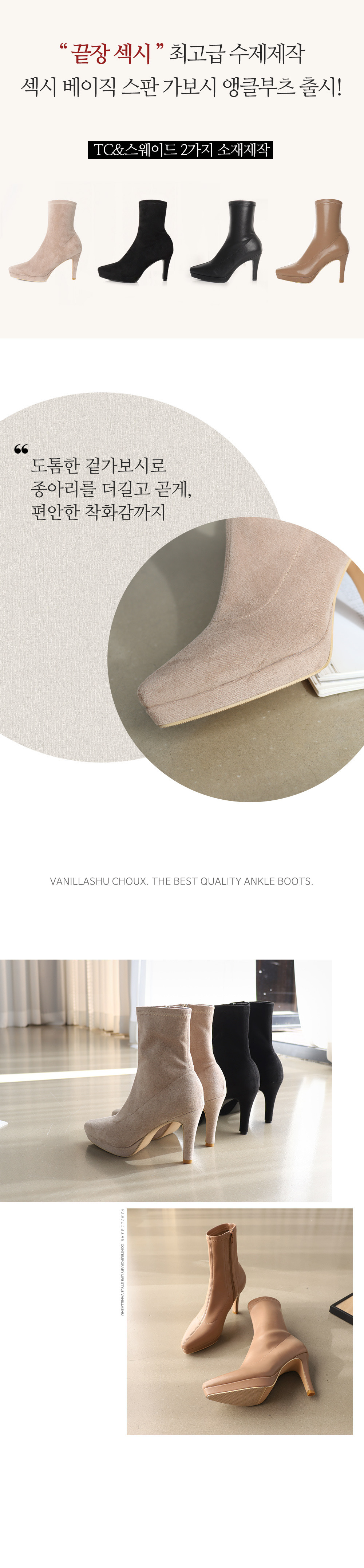 [바닐라슈 자체제작] 9cm 가보시 앵클부츠로 다리가 슬림해지는 스판 하이힐 부츠!
