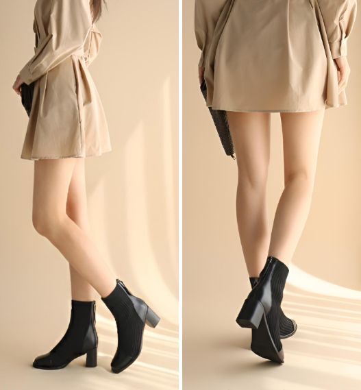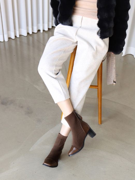 스커트/원피스룩: 미디 스커트나 니트 원피스에 매치하여 니트의 포근함과 슬림한 앵클 라인을 강조합니다.