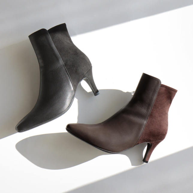 고급 소가죽과 스웨이드 콤비의 세련된 조화, 그리고 논슬립 몰드창의 안정감까지! 7cm 굽도 하루 종일 편안하게 신을 수 있는 완성도 높은 데일리 부츠입니다.