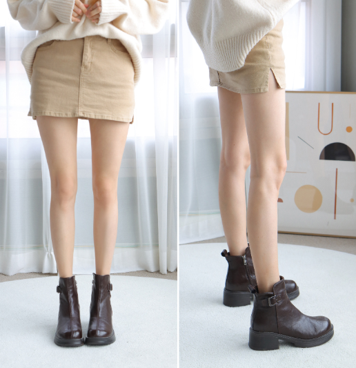 [마법의 앵클부츠] 데이시 융기모 벨트 통굽 5cm 후기! 탄력창으로 하루 종일 편안