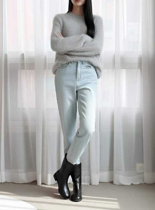 가을/겨울 감성: 부드러운 소재감 덕분에 니트나 롱 코트 등과 함께 포근한 겨울 무드 코디에 좋습니다.