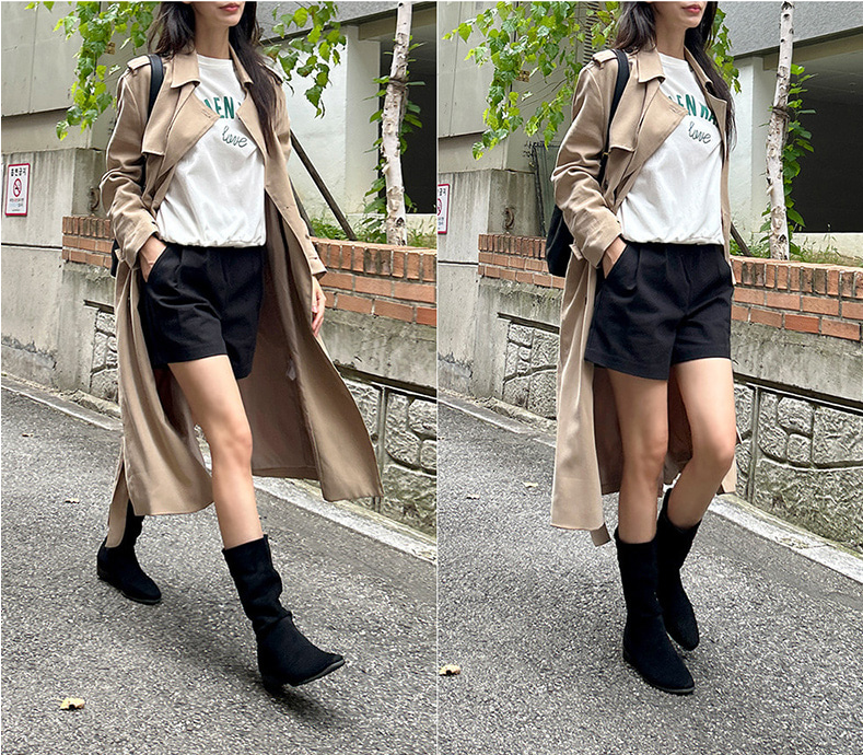 데님/슬림 팬츠:바지를 부츠 안에 넣어 내츄럴하고 세련된 데일리룩을 완성하거나, 부츠 위에 자연스럽게 덮어 시크한 느낌을 연출해 보세요.
