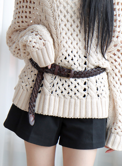 벨트 전체에 감각적인 메쉬(그물) 패턴이 들어가 있어, 일반적인 민자 벨트보다 훨씬 스타일리시하고 유니크한 무드를 연출합니다. 기본인 듯 하지만 디자인 포인트가 확실합니다.